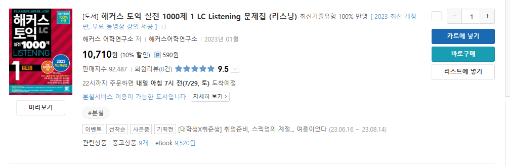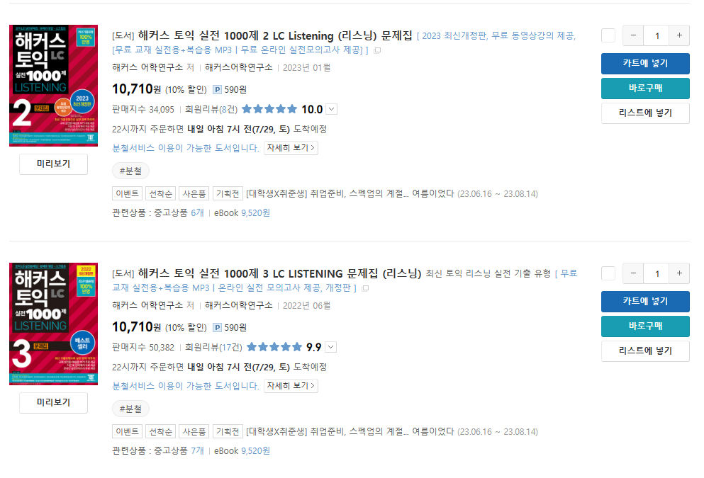 실전문제집 ets는 무조건 다 풀어보셔야 해요. LC는 무조건 해커스로요! ets껄로 풀려면 1.2배속으로 들으세요!
