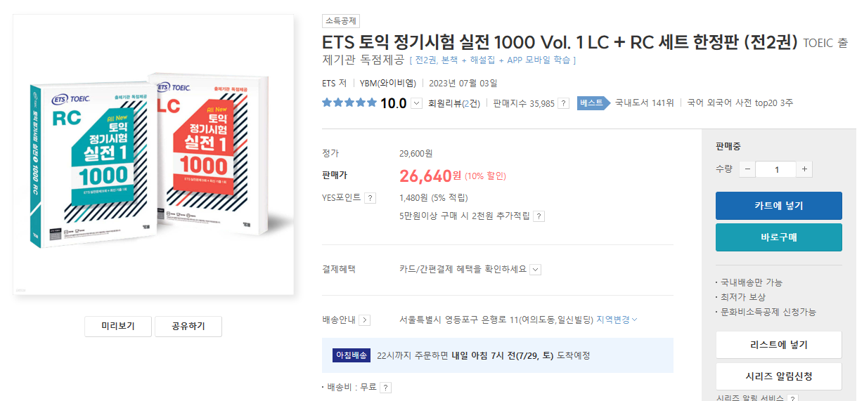 | 04. 토익 실전문제집 추천 1탄 (1) | 2023.11.01 |